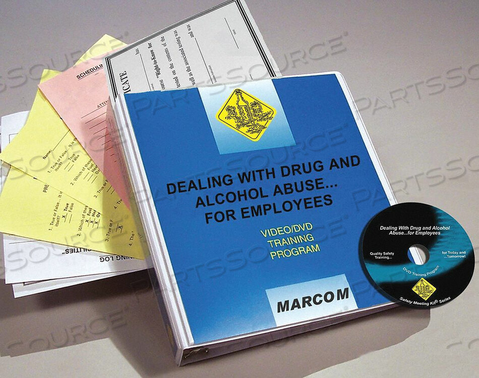 Создание рабочего места, свободного от наркотиков и алкоголя, DVD, Тест для сотрудников и Сертификат обучения, Руководство для руководителей, Сопутствующие законы и правила, Формы планирования и посещаемости, Рассматриваемые темы включают Последствия злоупотребления