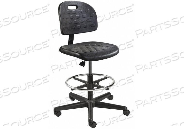 ПОЛИУРЕТАНОВЫЙ ОФИСНЫЙ ТАБУРЕТ — СРЕДНЕЙ ВЫСОТЫ С КОЛЕСИКАМИ И НОЖКАМИ — ЧЕРНЫЙ — СЕРИЯ BREVA