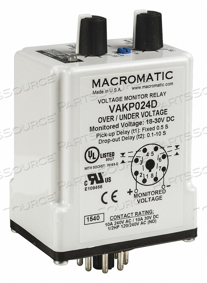 РЕЛЕ ДАТЧИКА НАПРЯЖЕНИЯ 24 В ПОСТОЯННОГО ТОКА 10 А при 240 В DPDT