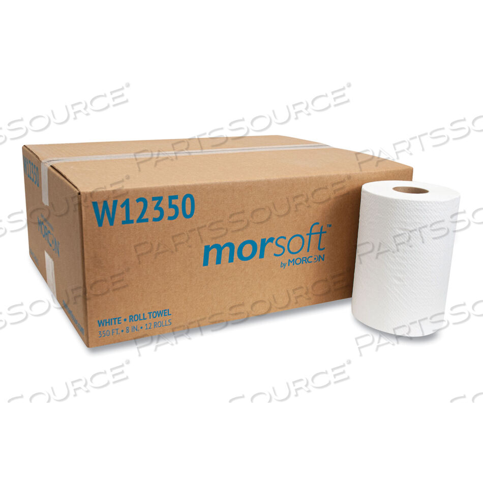 УНИВЕРСАЛЬНЫЕ РУЛОННЫЕ ПОЛОТЕНЦА MORSOFT, 8 X 350 ФУТОВ, БЕЛЫЕ, 12 РУЛОНОВ/КОРОБКА