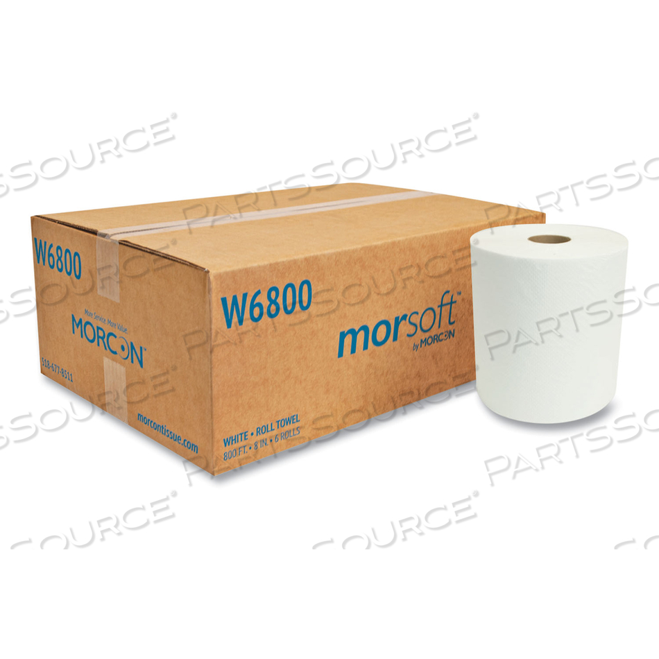 УНИВЕРСАЛЬНЫЕ РУЛОННЫЕ ПОЛОТЕНЦА MORSOFT, 8 X 800 ФУТОВ, БЕЛЫЕ, 6 РУЛОНОВ/КОРОБКА