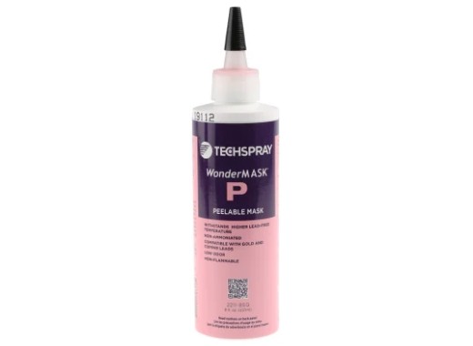 Маска для подготовки к пайке печатной платы. Устойчив к флюсу, волновой пайке и чистке. Раствор не содержит аммиака и поэтому не подвержен коррозии. После нанесения жидкость должна застыть. Если маска больше не нужна, ее легко снять.