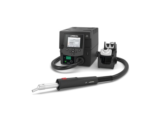 На этой станции термофен JT-T2A поставляется в комплекте с одним прямым и двумя изогнутыми соплами. Подставка для инструментов определяет, когда этот ремонтный инструмент был возвращен, и немедленно активирует автоматический режим ожидания. Этот режим ожидания обеспечивает лучшую безопасность на рабочем месте и более длительный срок службы насадок и инструмента горячего воздуха. Кроме того, на подставке также имеется «быстрая смена насадок», позволяющая быстро и безопасно менять насадки, даже если они еще горячие.