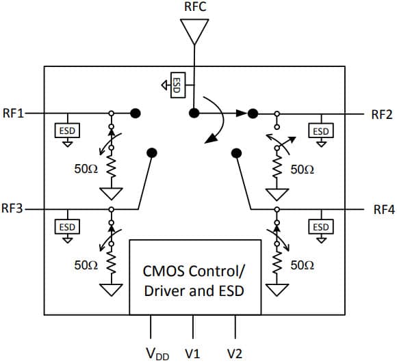 PE42441 — это поглощающий радиочастотный коммутатор SP4T с усовершенствованной технологией HaRP™, предназначенный для использования в различных коммутационных приложениях, охватывающих различные рынки, включая беспроводную инфраструктуру, широкополосную связь, а также тестирование и измерения. Этот коммутатор имеет четыре симметричных радиочастотных порта и обеспечивает низкие вносимые потери и исключительную изоляцию. Встроенная логика декодирования CMOS обеспечивает двухконтактный низковольтный интерфейс управления CMOS. Кроме того, внешние блокирующие конденсаторы не требуются, если на РЧ-портах присутствует напряжение 0 В постоянного тока.