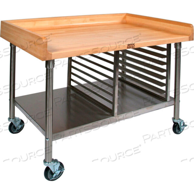 МОБИЛЬНЫЙ СТОЛ ДЛЯ РАЗДЕЛКИ С КЛЕНОВОЙ СТОЛЕШНИЦЕЙ — НОЖКИ ИЗ НЕРЖАВЕЮЩЕЙ СТАЛИ, ПОЛКА И ПОДСТАВКА ДЛЯ КАСТРЮЛ 48 Вт X36D
