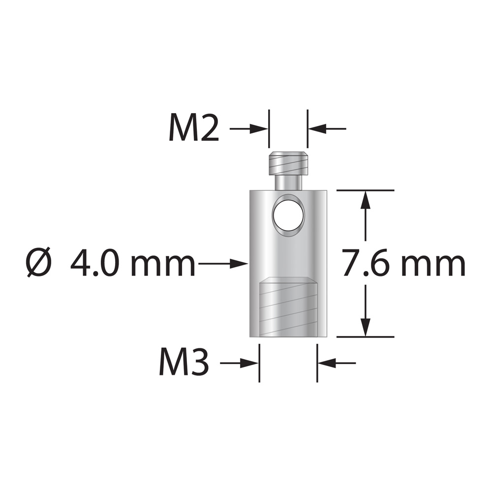 Описание Переходник с резьбы M2 на M3. Нержавеющая сталь. Вес 0,49 грамма. Сравните с Zeiss 602030-8345-000 и Renishaw A-5004-7593. Технические характеристики