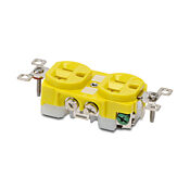 Промышленная сдвоенная розетка Bryant для тяжелых условий эксплуатации с прямыми контактами, 20 А, 125 В переменного тока, 1 фаза, 2 полюса, 3 провода, NEMA 5-20, литой корпус из нейлона, желтый.