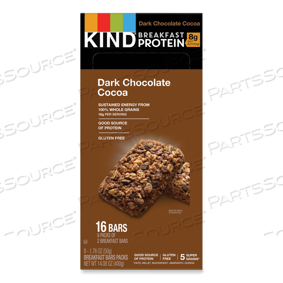БАТОНЧИКИ ДЛЯ ЗАВТРАКА, ТЕМНЫЙ ШОКОЛАД С КАКАО, КОРОБКА 50 Г, 8 ШТУК