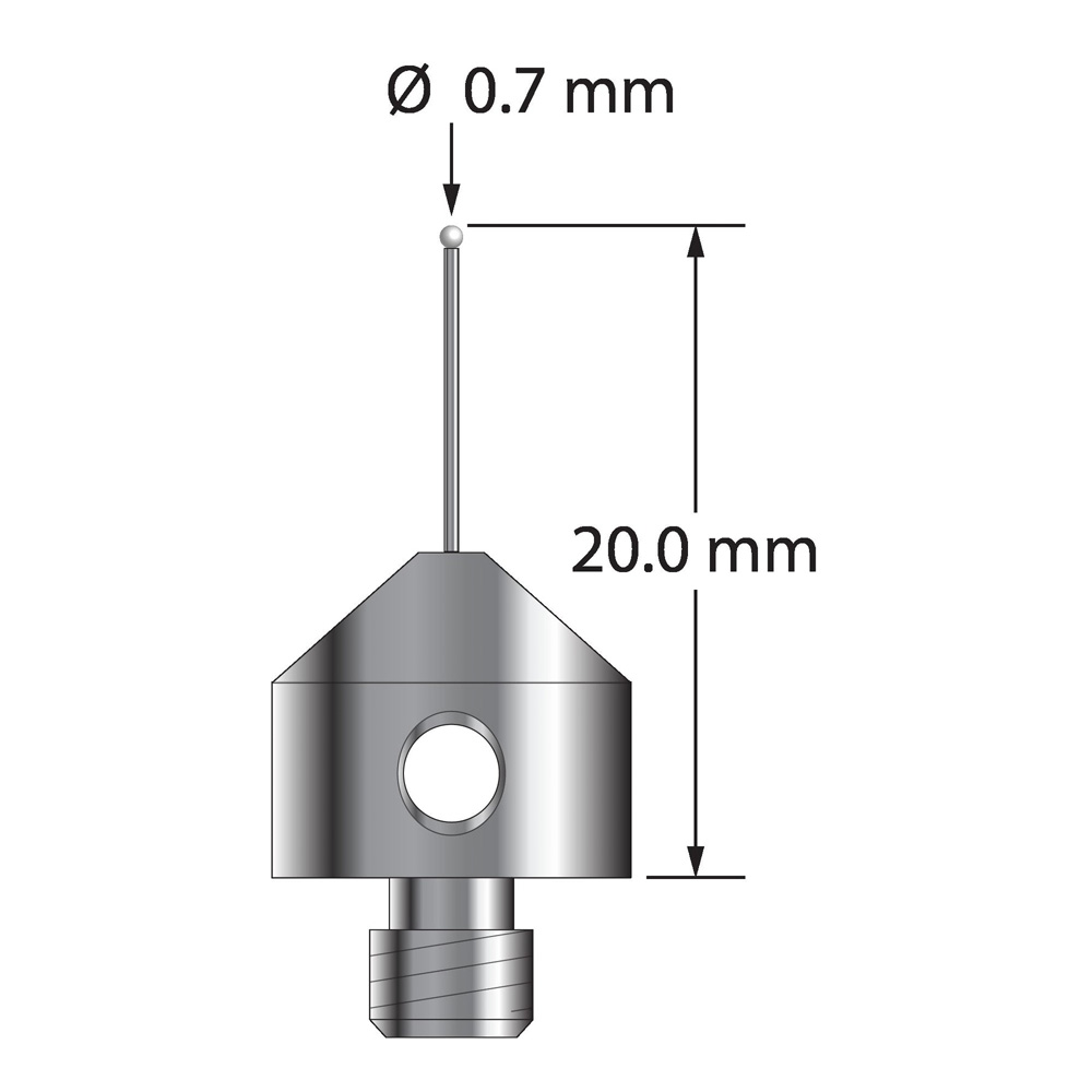 Описание Щуп M5 с циркониевым шариком диаметром 0,7 мм, карбидным стержнем диаметром 0,5 мм и основанием из нержавеющей стали диаметром 11,0 мм и длиной 10,0 мм. Общая длина иглы составляет 20,0 мм. Вес иглы составляет 5,62 грамма. Технические характеристики