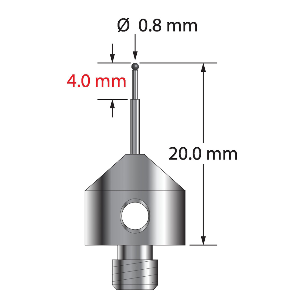 Описание Щуп M5 с рубиновым шариком диаметром 0,8 мм, ступенчатым карбидным стержнем и основанием из нержавеющей стали диаметром 11,0 мм и длиной 10,0 мм. Малый диаметр ножки 0,6 мм, большой диаметр 1,0 мм. Общая длина иглы составляет 20,0 мм. Вес иглы составляет 5,65 грамма. Технические характеристики