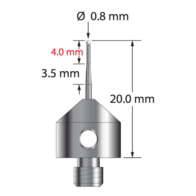 Описание Щуп M5 с циркониевым шариком диаметром 0,8 мм, коническим твердосплавным стержнем и основанием из нержавеющей стали диаметром 11,0 мм и длиной 10,0 мм. Диаметр малого стержня 0,6 мм, диаметр большого стержня 1,0 мм. Общая длина иглы составляет 20,0 мм. Вес иглы составляет 5,65 грамма. Технические характеристики
