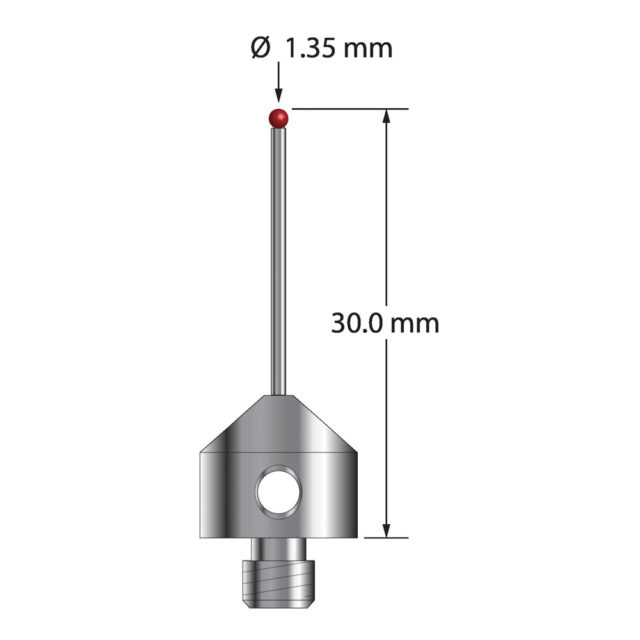 Описание Щуп M5 с рубиновым шариком диаметром 1,35 мм, карбидным стержнем диаметром 1,0 мм и основанием из нержавеющей стали диаметром 11,0 мм и длиной 10,0 мм. Общая длина иглы составляет 30,0 мм. Вес иглы составляет 5,75 грамма. Технические характеристики