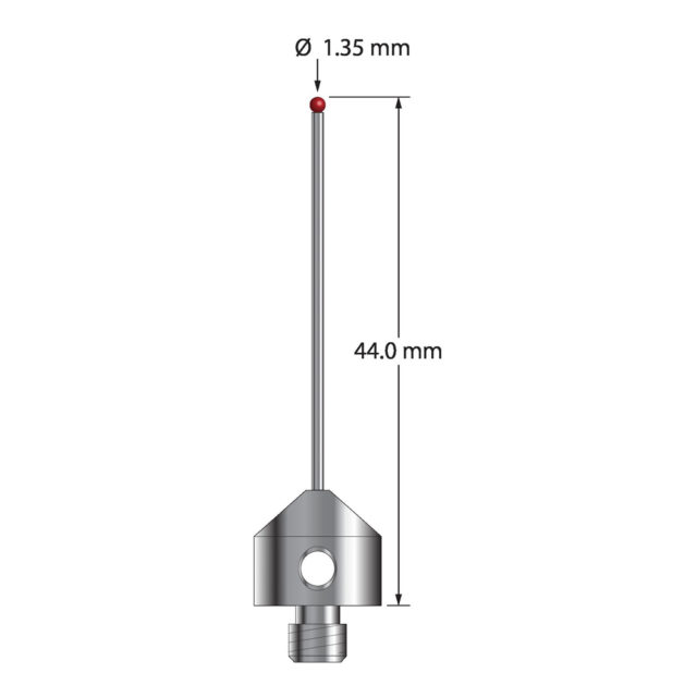 Описание Щуп M5 с рубиновым шариком диаметром 1,35 мм, карбидным стержнем диаметром 1,0 мм и основанием из нержавеющей стали диаметром 11,0 мм и длиной 10,0 мм. Общая длина иглы составляет 44,0 мм. Вес стилуса составляет 5,93 грамма. Технические характеристики