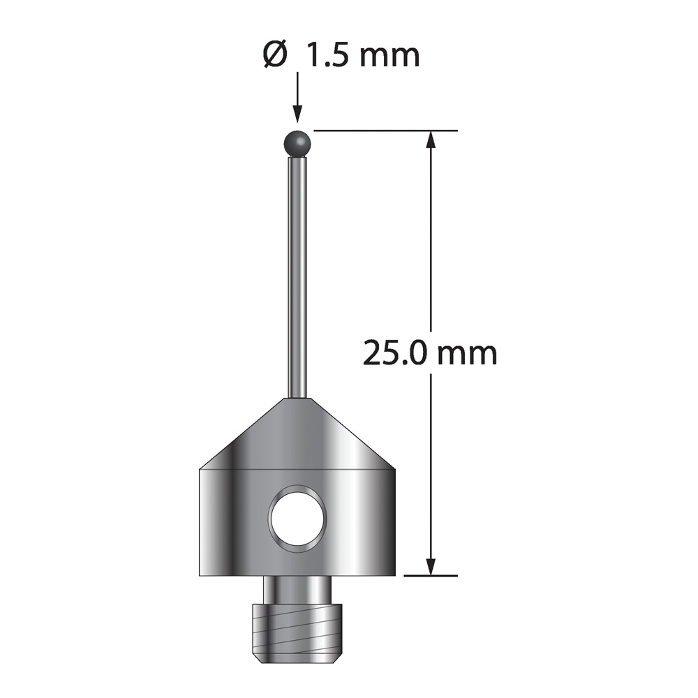 Описание Щуп M5 с шариком из нитрида кремния диаметром 1,5 мм, карбидным стержнем диаметром 1,0 мм и основанием из анодированного алюминия диаметром 11,0 мм и длиной 10,0 мм. Общая длина иглы составляет 25,0 мм. Вес иглы составляет 2,12 грамма. Технические характеристики