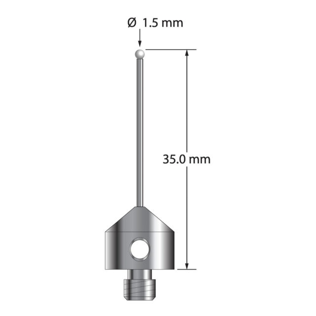 Описание Щуп M5 с циркониевым шариком диаметром 1,5 мм, карбидным стержнем диаметром 1,0 мм и основанием из нержавеющей стали диаметром 11,0 мм и длиной 10,0 мм. Общая длина иглы составляет 35,0 мм. Вес иглы составляет 5,80 грамма. Технические характеристики