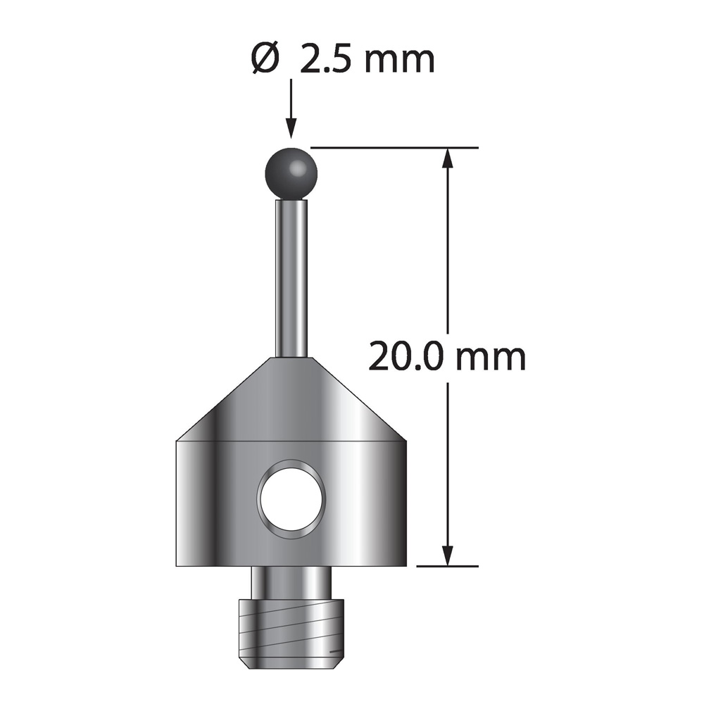 Описание Щуп M5 с шариком из нитрида кремния диаметром 2,5 мм, карбидным стержнем диаметром 1,5 мм и основанием из анодированного алюминия диаметром 11,0 мм и длиной 10,0 мм. Общая длина иглы составляет 20,0 мм. Вес иглы составляет 2,18 грамма. Технические характеристики