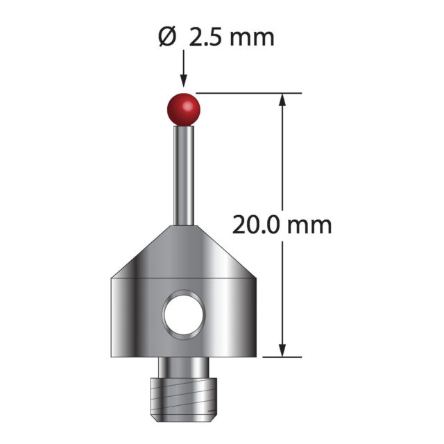 Описание Щуп M5 с рубиновым шариком диаметром 2,5 мм, карбидным стержнем диаметром 1,5 мм и основанием из нержавеющей стали диаметром 11,0 мм и длиной 10,0 мм. Общая длина иглы составляет 20,0 мм. Вес иглы составляет 5,75 грамма. Сравните с Zeiss 626115-0250-020. Технические характеристики