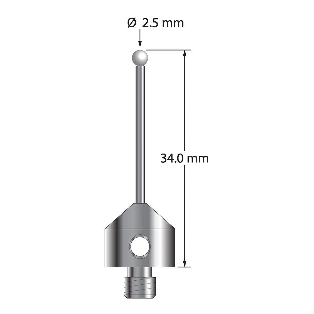 Описание Щуп M5 с циркониевым шариком диаметром 2,5 мм, карбидным стержнем диаметром 1,5 мм и основанием из нержавеющей стали диаметром 11,0 мм и длиной 9,0 мм. Общая длина иглы составляет 34,0 мм. Вес иглы составляет 6,26 грамма. Технические характеристики