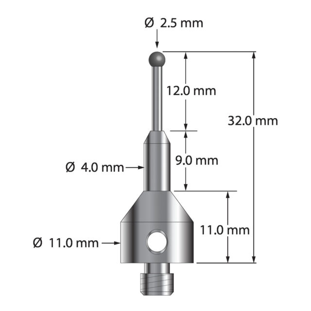 Описание Щуп M5 с шариком из нитрида кремния диаметром 2,5 мм, карбидным стержнем диаметром 1,5 мм и коническим основанием из нержавеющей стали диаметром 11,0 мм и длиной 20,0 мм. Общая длина стилуса составляет 32,0 мм. Вес иглы составляет 7,18 грамма. Сравните с Zeiss 626115-0250-032. Технические характеристики