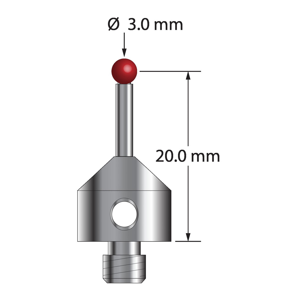 Описание Щуп M5 с рубиновым шариком диаметром 3,0 мм, карбидным стержнем диаметром 2,0 мм и основанием из нержавеющей стали диаметром 11,0 мм и длиной 10,0 мм. Длина иглы до центра шарика 20,0 мм. Вес иглы составляет 5,91 грамма. Сравните с Renishaw A-5003-5208. Технические характеристики