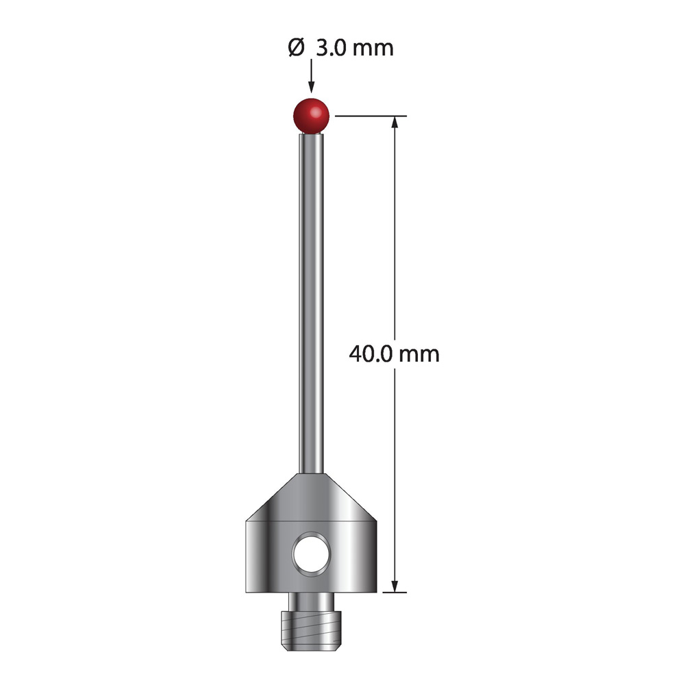 Описание Щуп M5 с рубиновым шариком диаметром 3,0 мм, карбидным стержнем диаметром 2,0 мм и основанием из нержавеющей стали диаметром 11,0 мм и длиной 10,0 мм. Длина иглы до центра шарика 40,0 мм. Вес иглы составляет 7,18 грамма. Сравните с Renishaw A-5003-5224 и Zeiss 000000-1776-953. Технические характеристики
