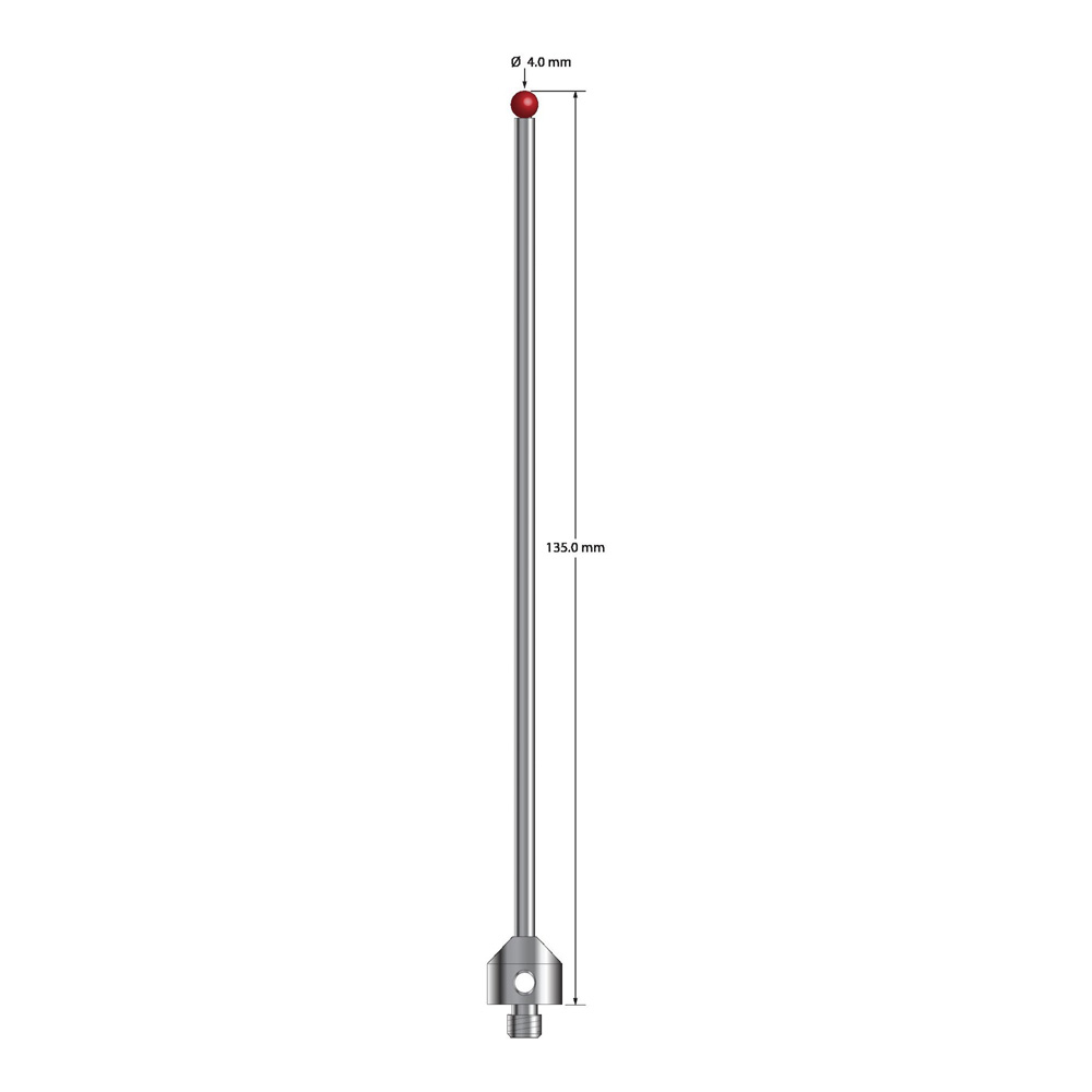 Описание Щуп M5 с рубиновым шариком диаметром 4,0 мм, карбидным стержнем диаметром 3,0 мм и основанием из нержавеющей стали диаметром 11,0 мм и длиной 10,0 мм. Общая длина иглы составляет 135,0 мм. Вес стилуса составляет 18,32 грамма. Сравните с Zeiss 626115-0401-135. Технические характеристики