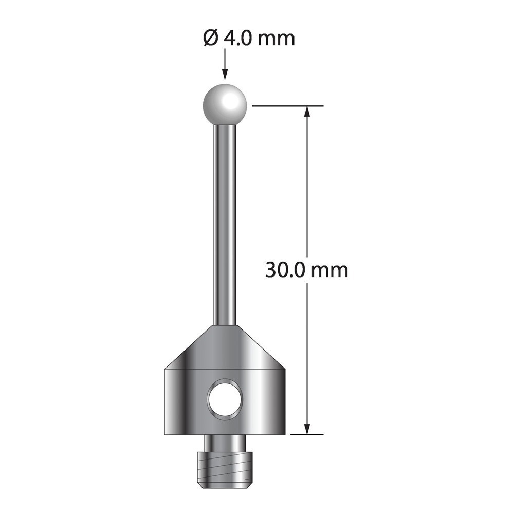 Описание Щуп M5 с циркониевым шариком диаметром 4,0 мм, карбидным стержнем диаметром 2,0 мм и основанием из нержавеющей стали диаметром 11,0 мм и длиной 10,0 мм. Длина иглы до центра шарика 30,0 мм. Вес иглы составляет 6,72 грамма. Технические характеристики