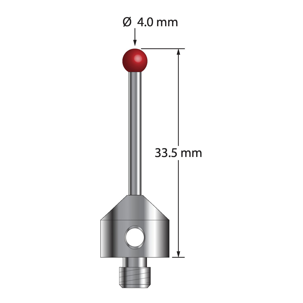 Описание Щуп M5 с рубиновым шариком диаметром 4,0 мм, карбидным стержнем диаметром 2,0 мм и основанием из нержавеющей стали диаметром 11,0 мм и длиной 10,0 мм. Общая длина стилуса составляет 33,5 мм. Вес иглы составляет 6,80 грамма. Сравните с Zeiss 600342-8025-000 и Renishaw A-5555-0022. Технические характеристики