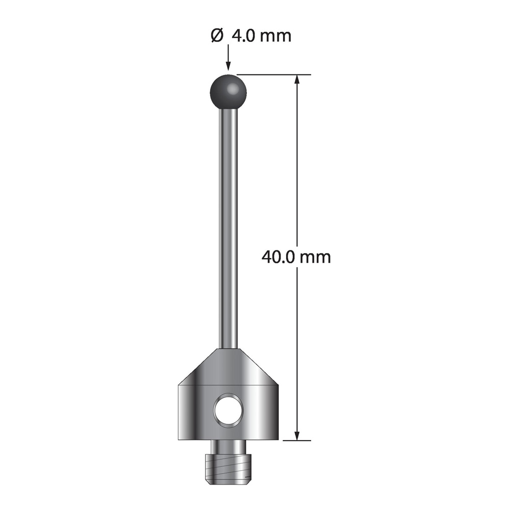 Описание Щуп M5 с шариком из нитрида кремния диаметром 4,0 мм, карбидным стержнем диаметром 2,0 мм и основанием из нержавеющей стали диаметром 11,0 мм и длиной 10,0 мм. Общая длина иглы составляет 40,0 мм. Вес стилуса составляет 7,08 грамма. Сравните с Zeiss 626115-0401-040. Технические характеристики