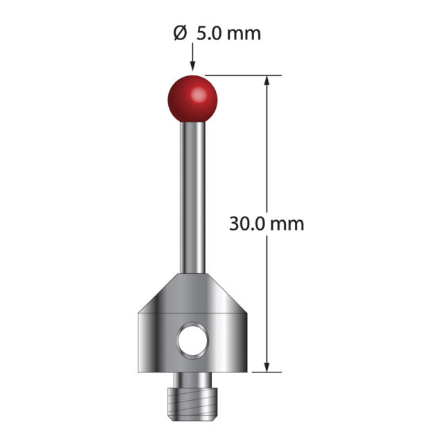 Описание Щуп M5 с рубиновым шариком диаметром 5,0 мм, карбидным стержнем диаметром 2,5 мм и основанием из нержавеющей стали диаметром 11,0 мм и длиной 10,0 мм. Общая длина иглы составляет 30,0 мм. Вес иглы составляет 7,37 грамма. Технические характеристики