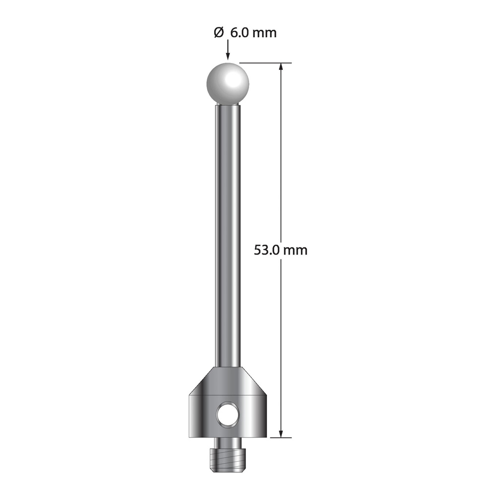 Описание Щуп M5 с циркониевым шариком диаметром 6,0 мм, карбидным стержнем диаметром 3,5 мм и основанием из нержавеющей стали диаметром 11,0 мм и длиной 10,0 мм. Общая длина иглы составляет 53,0 мм. Вес иглы составляет 12,47 грамма. Технические характеристики