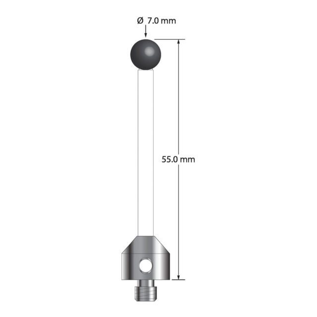Описание Щуп M5 с шариком из нитрида кремния диаметром 7,0 мм, керамическим стержнем диаметром 3,5 мм и основанием из анодированного алюминия диаметром 11,0 мм и длиной 10,0 мм. Общая длина иглы составляет 55,0 мм. Вес иглы составляет 4,09 грамма. Технические характеристики
