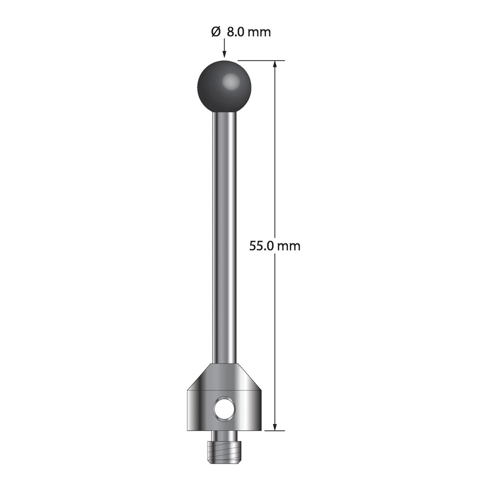 Описание Щуп M5 с шариком из нитрида кремния диаметром 8,0 мм, карбидным стержнем диаметром 3,5 мм и основанием из нержавеющей стали диаметром 11,0 мм и длиной 10,0 мм. Общая длина иглы составляет 50,0 мм. Вес иглы составляет 12,13 грамма. Сравните с Zeiss 626115-0800-055. Технические характеристики