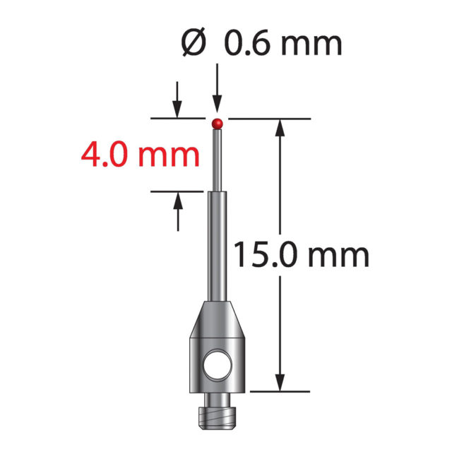 Описание Щуп M2 с рубиновым шариком диаметром 0,6 мм, ступенчатым твердосплавным стержнем и основанием из нержавеющей стали диаметром 3,0 мм и длиной 5,0 мм. Малый диаметр ножки 0,4 мм, большой диаметр 1,0 мм. Общая длина иглы составляет 15,0 мм. Вес иглы составляет 0,31 грамма. Технические характеристики