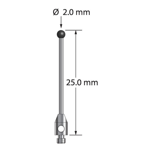 Описание Щуп M2 с шариком из нитрида кремния диаметром 2,0 мм, карбидным стержнем диаметром 1,0 мм и основанием из нержавеющей стали диаметром 3,0 мм и длиной 5,0 мм. Общая длина иглы составляет 25,0 мм. Вес иглы 0,46 грамма. Технические характеристики