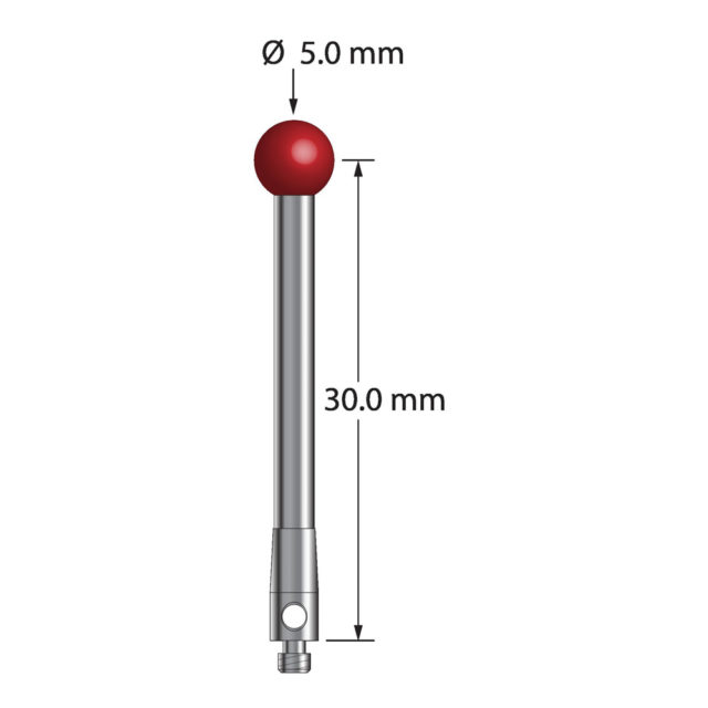 Описание Щуп M2 с рубиновым шариком диаметром 5,0 мм, карбидным стержнем диаметром 2,5 мм и основанием из нержавеющей стали диаметром 3,0 мм и длиной 6,0 мм. Длина иглы до центра шарика 30,0 мм. Вес иглы составляет 2,45 грамма. Сравните с Renishaw A-5003-0047. Технические характеристики
