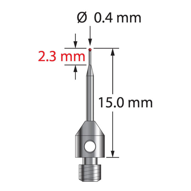 Описание Щуп M3 с рубиновым шариком диаметром 0,4 мм, коническим твердосплавным стержнем и основанием из нержавеющей стали диаметром 4,0 мм и длиной 5,0 мм. Диаметр малого стержня 0,3 мм, диаметр большого стержня 1,0 мм. Общая длина иглы составляет 15,0 мм. Вес иглы 0,49 грамма. Технические характеристики