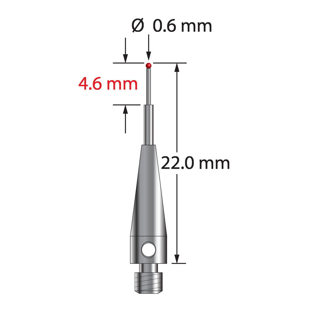 Описание Щуп M3 с рубиновым шариком диаметром 0,6 мм, ступенчатым карбидным стержнем и основанием из нержавеющей стали диаметром 4,0 мм и длиной 13,0 мм. Малый диаметр ножки 0,4 мм, большой диаметр 1,0 мм. Общая длина иглы составляет 22,0 мм. Вес иглы 0,90 грамма. Сравните с Zeiss 602030-8116-000. Технические характеристики