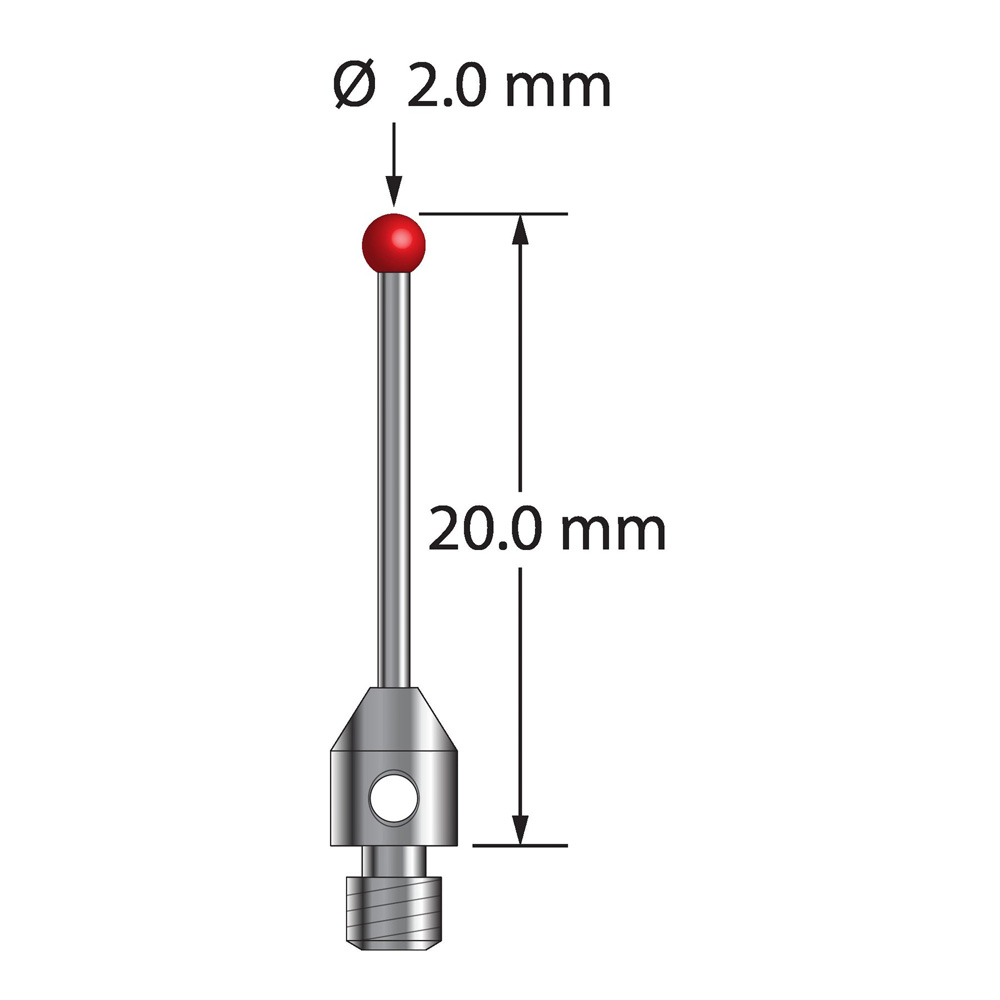 Описание Щуп M3 с рубиновым шариком диаметром 2,0 мм, карбидным стержнем диаметром 1,0 мм и основанием из нержавеющей стали диаметром 4,0 мм и длиной 5,0 мм. Общая длина иглы составляет 20,0 мм. Вес иглы составляет 0,61 грамма. Технические характеристики