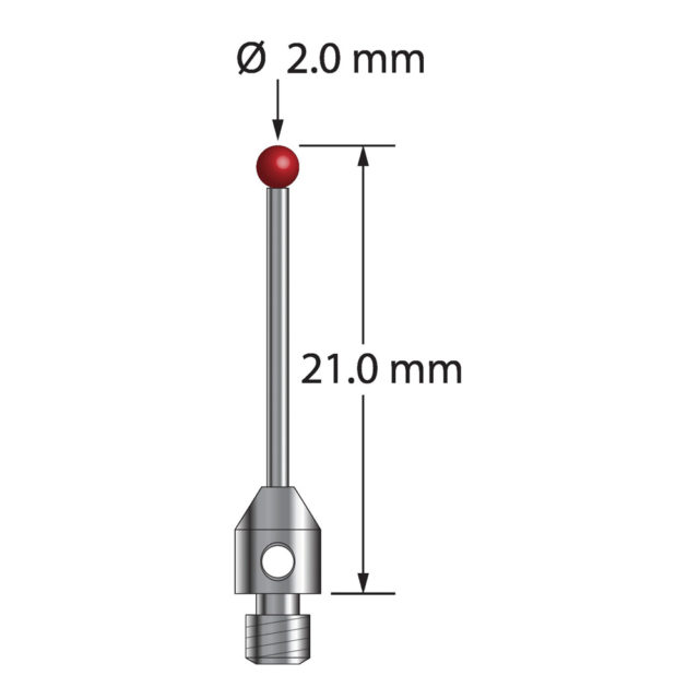 Описание Щуп M3 с рубиновым шариком диаметром 2,0 мм, карбидным стержнем диаметром 1,0 мм и основанием из нержавеющей стали диаметром 4,0 мм и длиной 5,0 мм. Общая длина иглы составляет 21,0 мм. Вес иглы 0,63 грамма. Технические характеристики