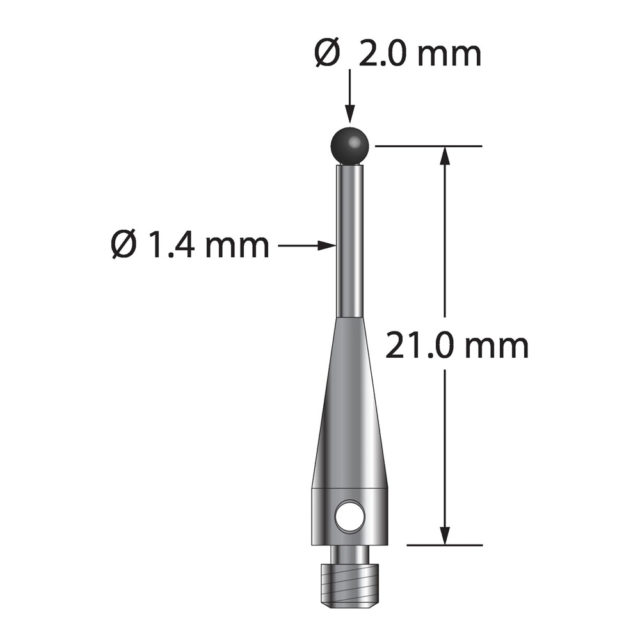 Описание Щуп M3 с шариком из нитрида кремния диаметром 2,0 мм и корпусом из нержавеющей стали. Длина иглы до центра шарика составляет 21,0 мм. Вес 0,82 грамма. Сравните с Renishaw A-5003-5723. Технические характеристики