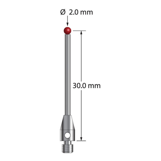Описание Щуп M3 с рубиновым шариком диаметром 2,0 мм, карбидным стержнем диаметром 1,5 мм и основанием из нержавеющей стали диаметром 4,0 мм и длиной 7,0 мм. Длина иглы до центра шарика 30,0 мм. Вес иглы составляет 1,26 грамма. Сравните с Renishaw A-5003-0052. Технические характеристики