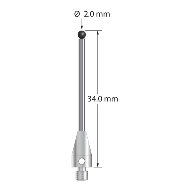 Описание Щуп M3 XXT с шариком из нитрида кремния диаметром 2,0 мм, карбидным стержнем диаметром 1,5 мм и титановым основанием диаметром 5,0 мм и длиной 9,0 мм. Общая длина иглы составляет 34,0 мм. Вес иглы 0,85 грамма. Сравните с Zeiss 626103-0255-034. Технические характеристики