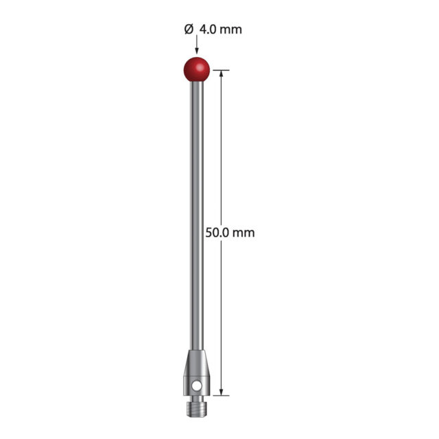 Описание Щуп M3 с рубиновым шариком диаметром 4,0 мм, карбидным стержнем диаметром 2,0 мм и основанием из нержавеющей стали диаметром 4,0 мм и длиной 7,0 мм. Длина иглы до центра шарика 50,0 мм. Вес иглы составляет 2,67 грамма. Сравните с Renishaw A-5003-0061. Технические характеристики