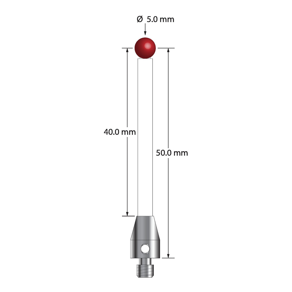 Описание Щуп M4 с рубиновым шариком диаметром 5,0 мм, керамическим стержнем диаметром 3,5 мм и основанием из нержавеющей стали диаметром 7,0 мм и длиной 10,0 мм. Длина иглы до центра шарика 50,0 мм. Вес иглы составляет 3,71 грамма. Сравните с Renishaw A-5003-0235. Технические характеристики