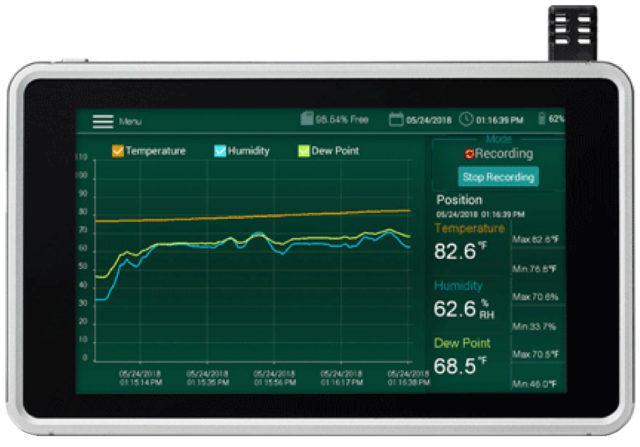 Самописец диаграммы влажности/температуры Extech RH550 одновременно регистрирует данные и контролирует относительную влажность, температуру и расчетную точку росы на Extech RH550. Он имеет время записи в реальном времени или по расписанию пользователя, а также программируемые минимальные и максимальные контрольные точки сигнализации. В комплект поставки входит встроенная подставка для настольного использования, а также кронштейн для настенного монтажа. RH550 также оснащен сменным датчиком, который можно прикрепить к монитору или с помощью кабеля длиной 6,5 футов (2 м). Этот рекордер пригодится в офисных зданиях, конференц-залах, лабораториях, больницах, чистых помещениях, теплицах, хранилищах продуктов и т. д.