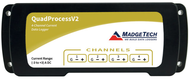 QuadProcessV2 — это 4-канальный регистратор данных постоянного тока низкого уровня с питанием от батареи и скоростью считывания до 4 Гц. Он может измерять и записывать 523 776 показаний на канал. Чтобы максимизировать объем памяти, пользователи могут включать или отключать каналы. Для облегчения идентификации каждому каналу можно присвоить десятизначное название. Это простое в использовании устройство имеет срок службы батареи 1 год, заменяемую пользователем батарею и программируемые инженерные модули. Носителем данных является энергонезависимая твердотельная память, обеспечивающая максимальную безопасность данных даже в случае разрядки аккумулятора.