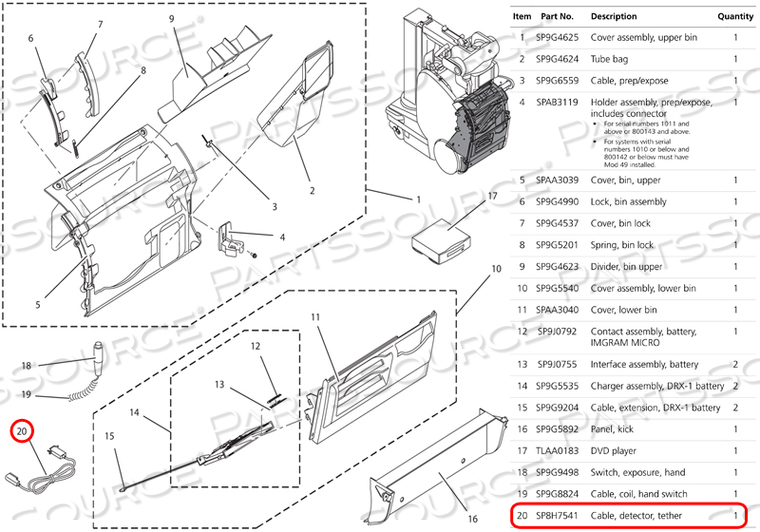 Заменяет Carestream Health, Inc. SP8H7541КАБЕЛЬ, ДЕТЕКТОР, ПРИВЯЗЬ.