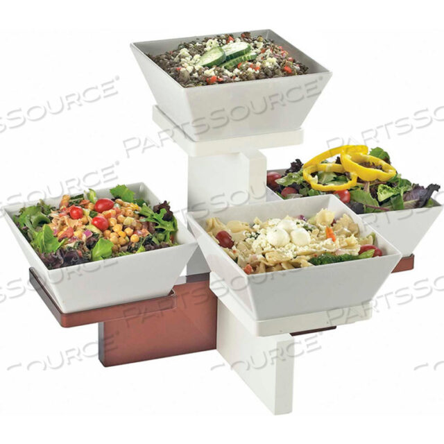 РОСКОШНАЯ МНОГОУРОВНЕВАЯ ВИТРИНА С 4 ЧАШАМИ, БЕЛАЯ И НЕРЖАВЕЮЩАЯ СТАЛЬ 20 Ш x 16 Г x 13-1/2 В