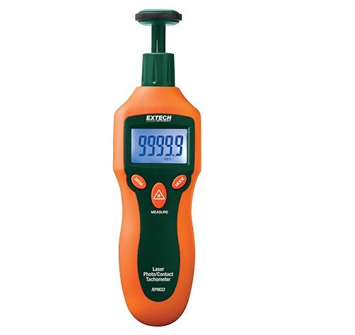 RPM33 обеспечивает как контактное (от 2 до 19 999 об/мин), так и бесконтактное — контактное (от 2 до 99 999 об/мин) измерение числа оборотов для повышения универсальности. Бесконтактные измерения частоты вращения с лазерным наведением на расстоянии до 1,6 фута (500 мм) для дополнительной безопасности. Показания отображаются на большом пятиразрядном ЖК-дисплее с подсветкой. Сохранение/вызов 10 наборов данных в памяти с 4 параметрами (измерение, максимум, минимум и среднее значение). Поставляется с контактным колесом для измерения линейной поверхностной скорости (от 0,2 до 6560 футов/мин, от 0 до 1999,9 м/мин) или измерения числа оборотов в минуту, 9-вольтовой батареей, отражающей лентой, сумкой для переноски и руководством пользователя.